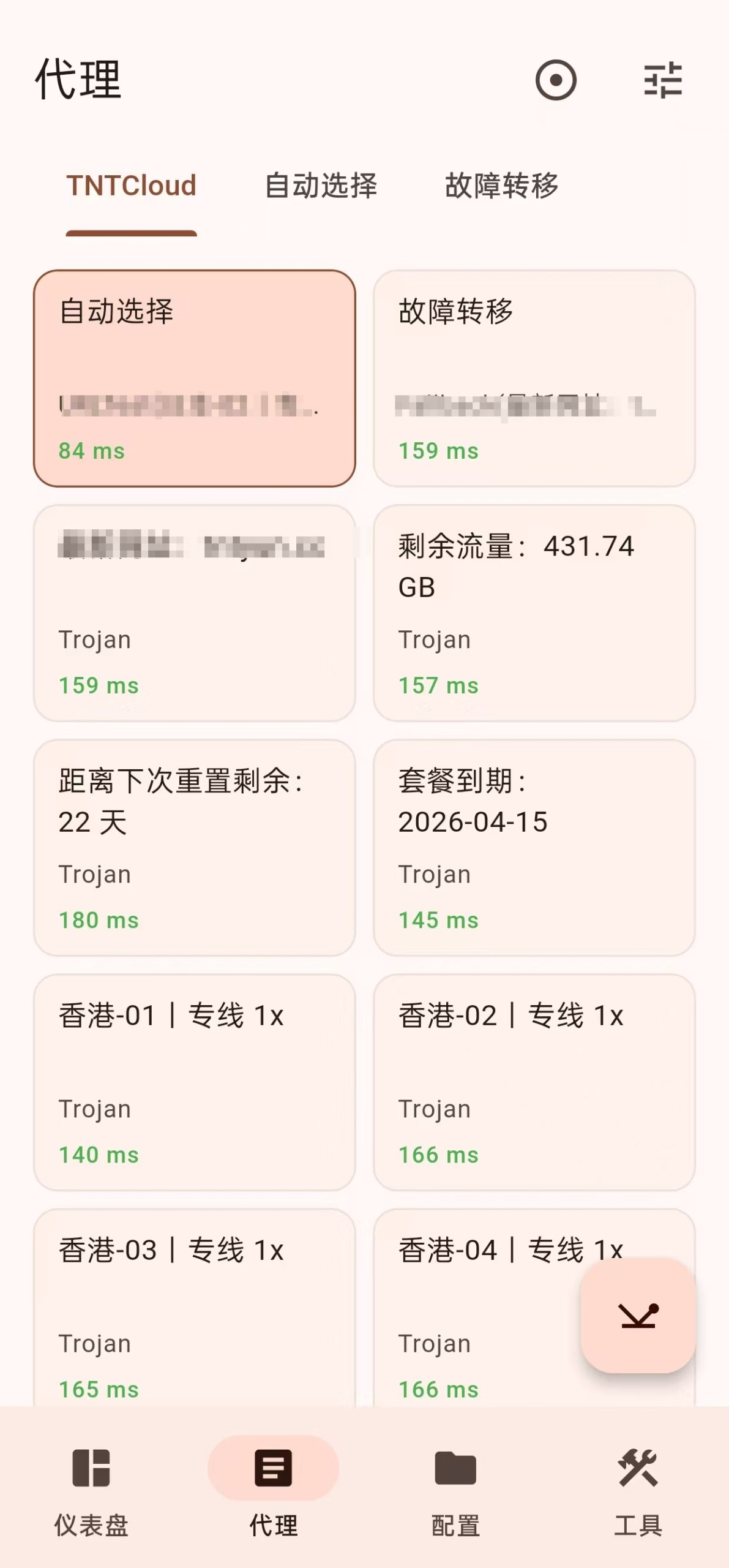 导入成功 FlClash 底部菜单会自动添加【代理】菜单。