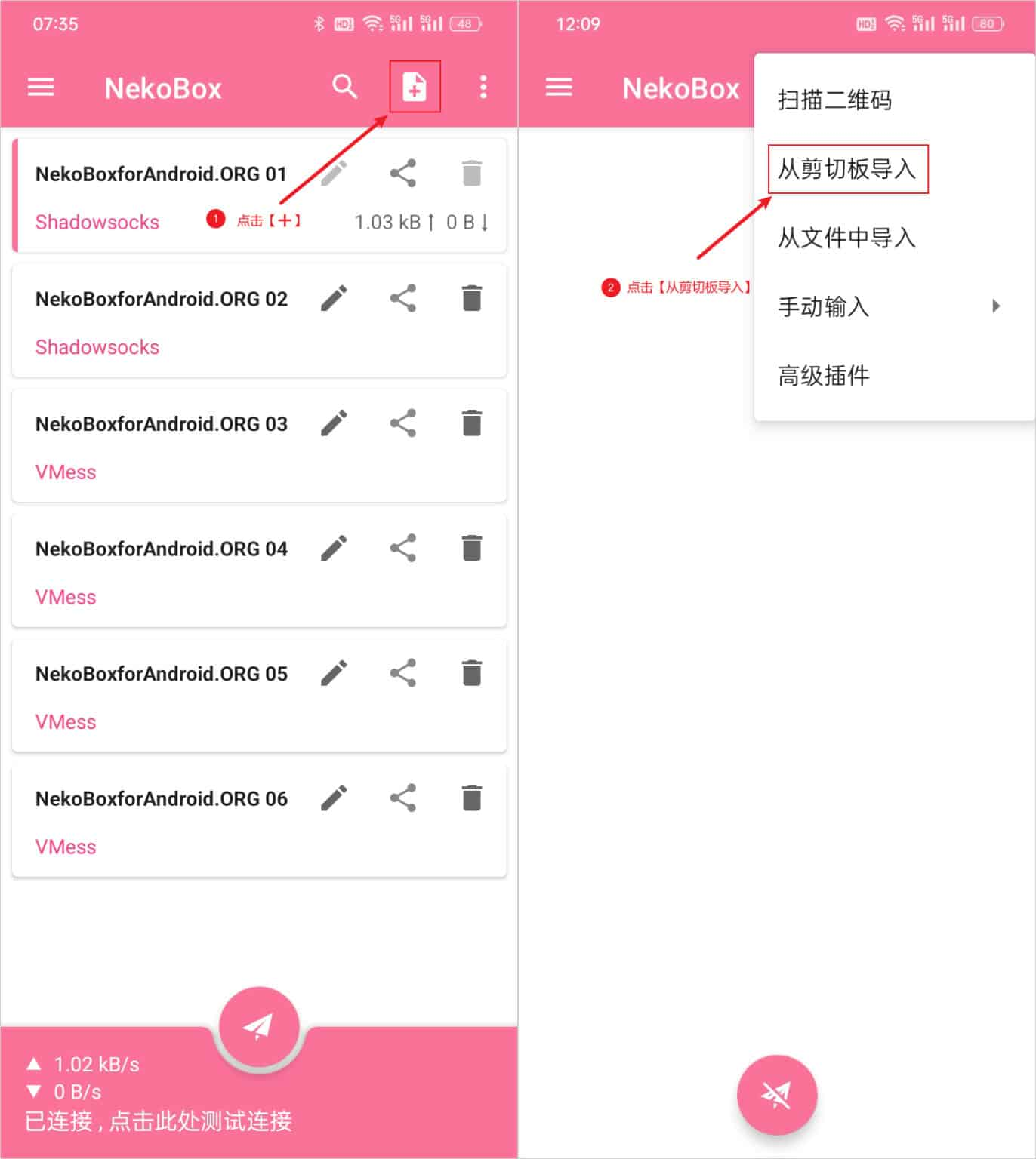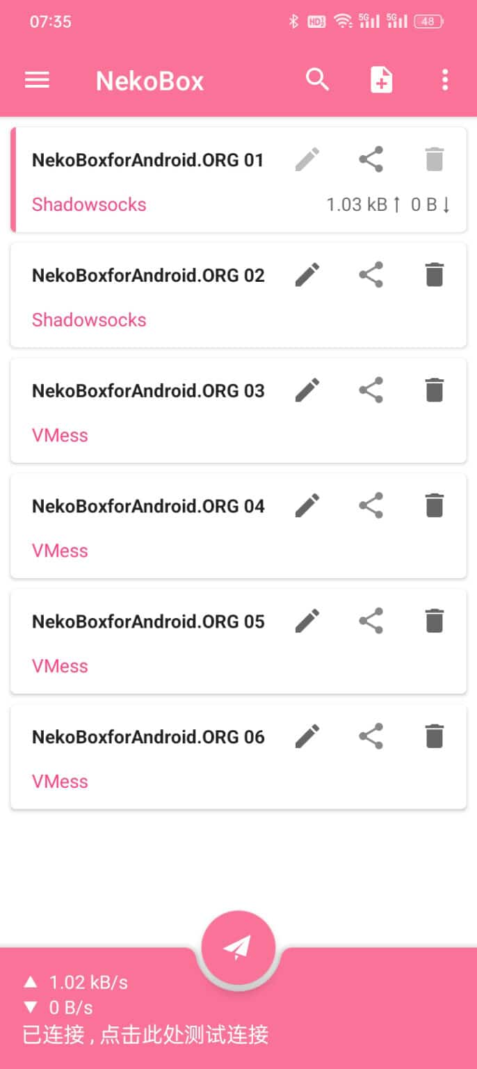 节点服务器即软件中的配置文件,在使用之前,首先需要添加一个 NekoBox for Android节点 即服务端才能使用代理上网功能,更多节点可参考本站Clash节点 | 获取Clash订阅节点